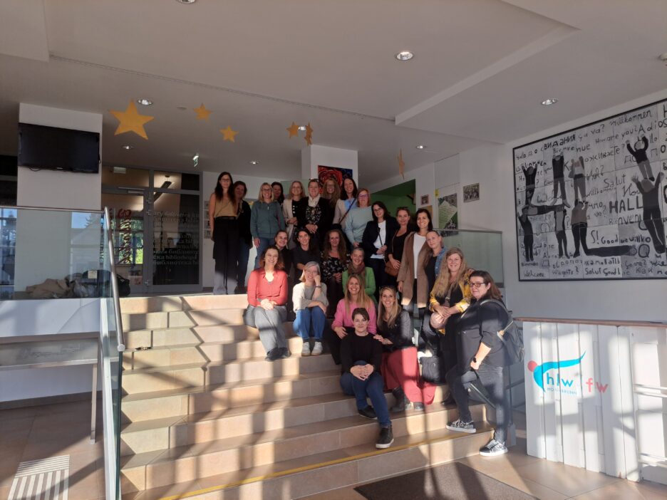 Ein besonderes Highlight war die Schulführung, die durch 4 UDLM-Schüler:innen geleitet wurde. Dabei konnten die Absolventinnen die vielen Neuerungen und modernen Entwicklungen an der HLW bestaunen – von EDV-Räumen bis hin zu den neu gestalteten Praxisbereichen.
