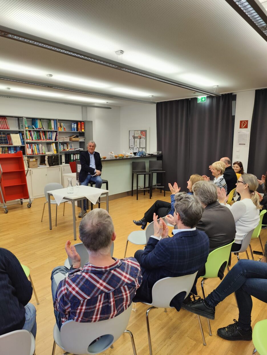 Am Dienstag kehrte Hofrat Mag. Leopold Mayer an seine alte Wirkungsstätte zurück. Diesmal nicht als Direktor, sondern als Autor. In einer kurzweiligen Lesung, die vom Buchhändler Alexowsky ausgerichtet und finanziert wurde, präsentierte er nach einem gemütlichen Sektempfang sein neues Werk ‚Das G’schichtenbuch der Schule‘. Mit seinen darin präsentierten Tipps, Tricks und alltagsnahen Weisheiten zeigt er, wie Schule zu einem Ort des Lachens, Lernens, Freunde findens und Wohlfühlens wird- oder im Falle der HLW Hollabrunn ein solcher Ort bleibt.