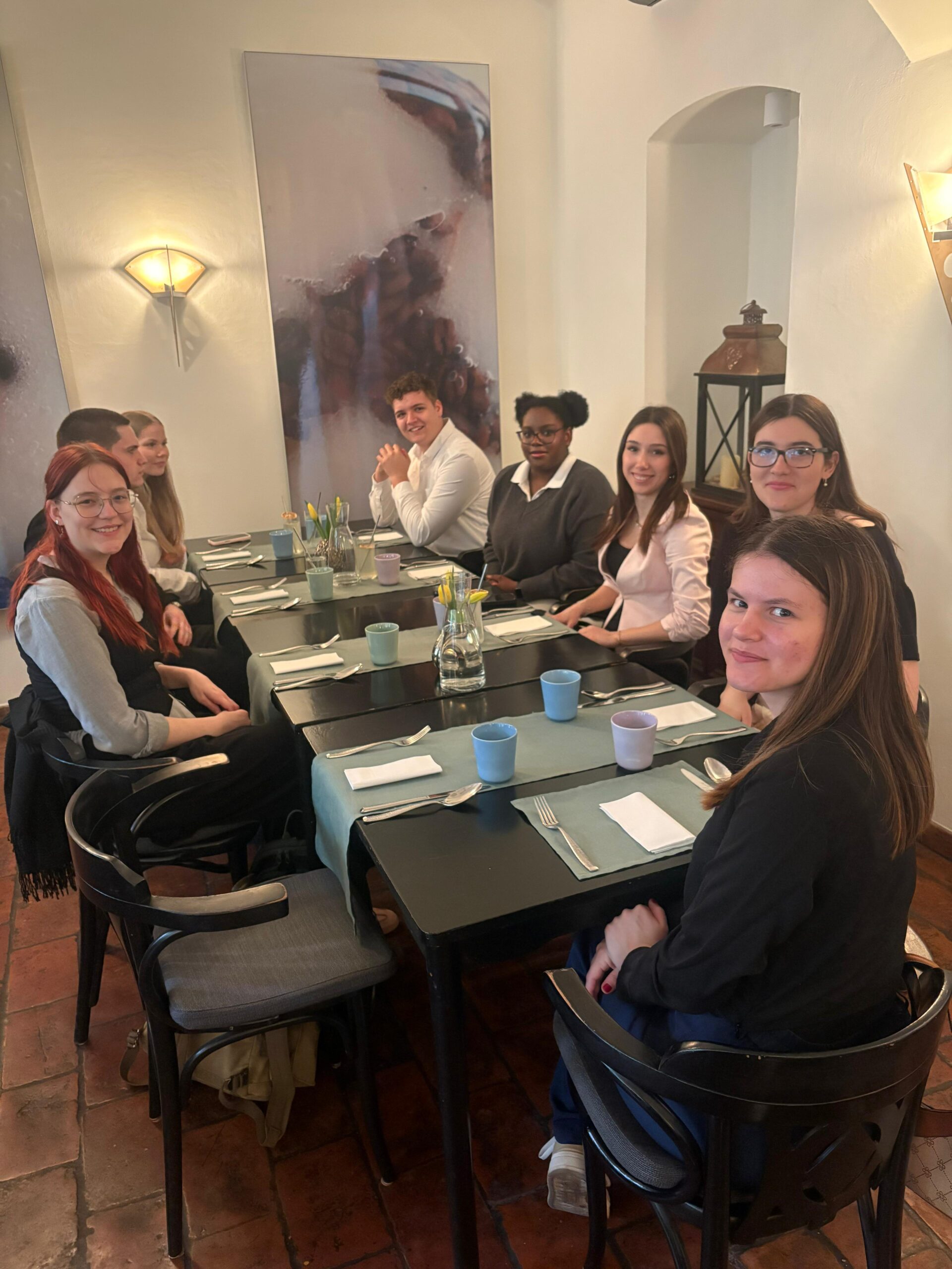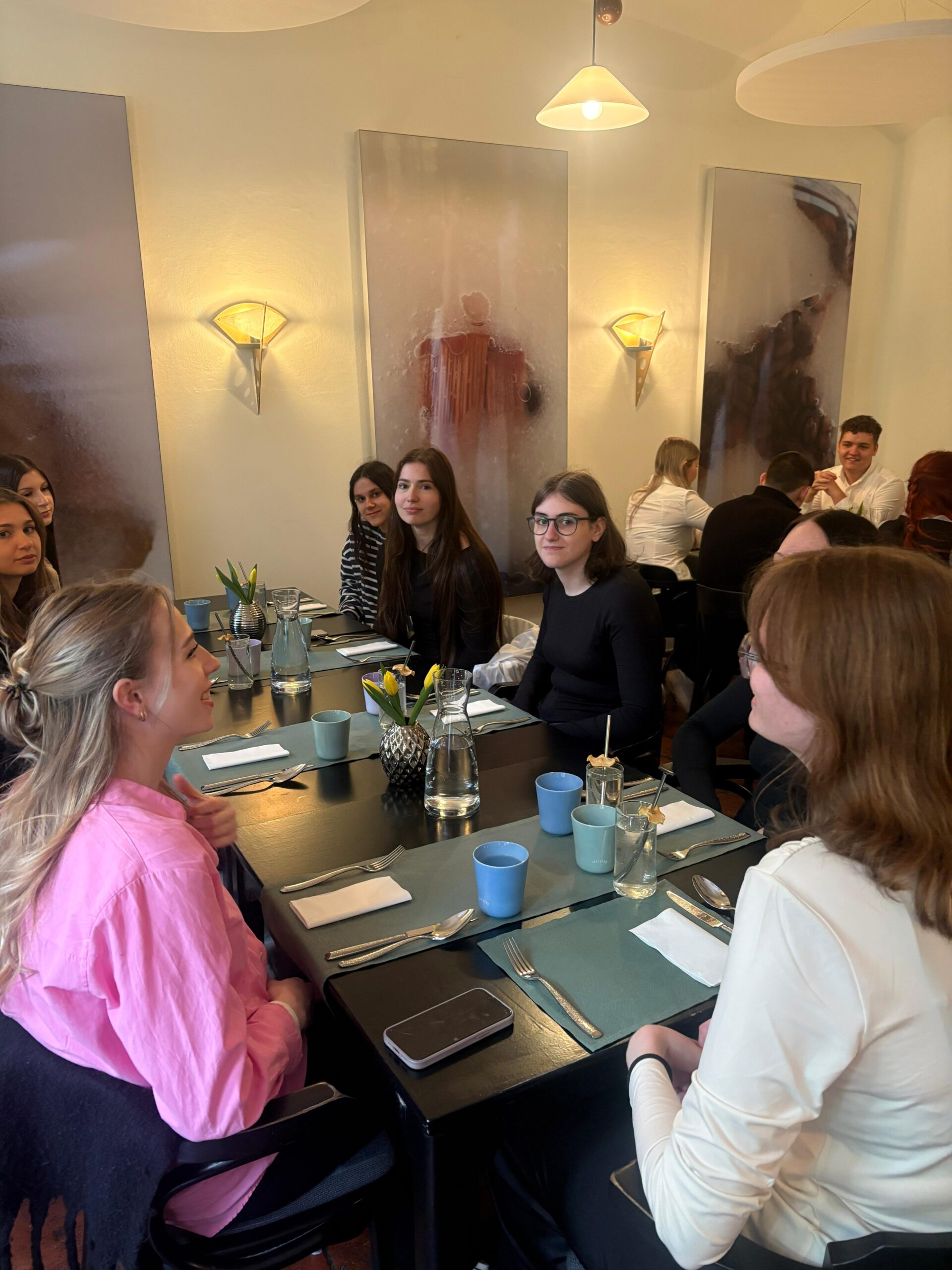 Anschließend ließen die Schüler:innen ihre Eindrücke bei einer Tasse Kaffee oder Tee gemütlich Revue passieren. Den gelungenen Abschluss bildete ein Besuch im Restaurant „Edlingers Tempel“, wo ein köstliches 3-Gänge-Menü in angenehmer Atmosphäre gemeinsam genossen wurde.