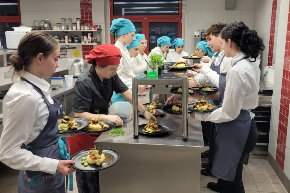 Im März luden die Schülerinnen und Schüler der dritten Jahrgänge zu einem besonderen kulinarischen Erlebnis – dem Kulinarium – ein. Unter dem Motto „Frühlingsgefühle“ zauberten sie ein 3-Gänge-Menü und verwöhnten ihre Gäste an diesem Abend. Jede:r Schüler:in hatte die Möglichkeit, zwei Gäste zu diesem festlichen Anlass einzuladen.