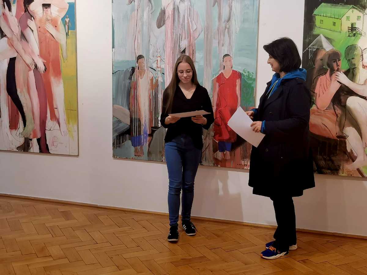 Die Schülerinnen präsentierten am 27.4. stolz ihr erlangtes Wissen in Form einer gemeinsamen Vermittlung in der Galerie grenzART vor Verwandten, Lehrer:innen und Frau Dir. Marion Hofmann und zeigten dabei eindrucksvoll, wie lebendig und vielfältig moderne Kunst sein kann.
