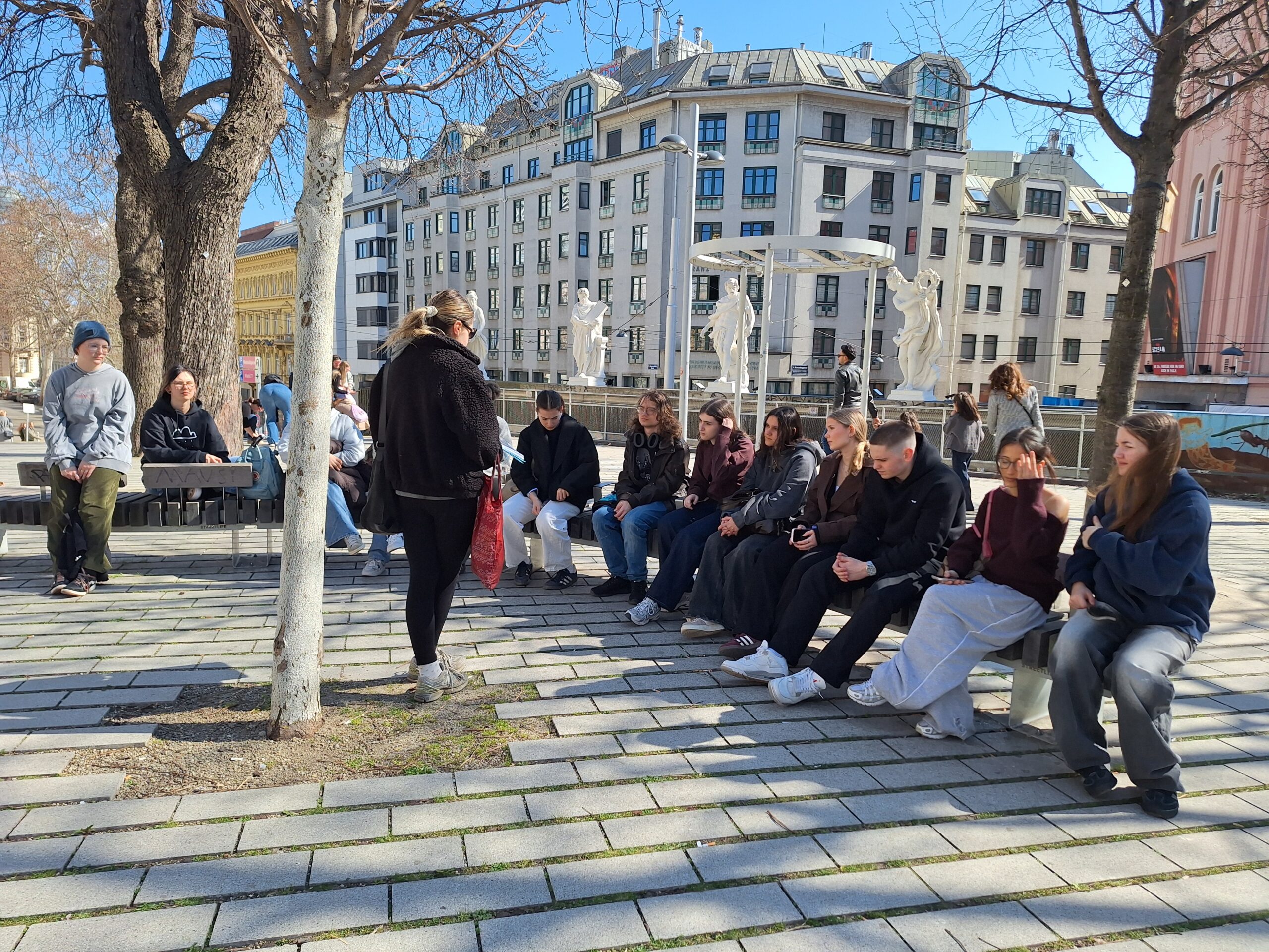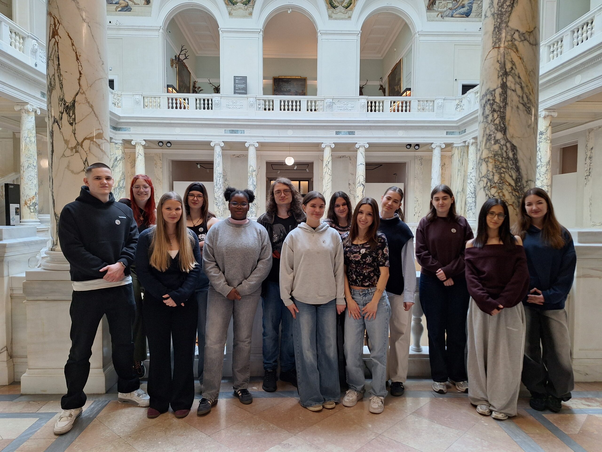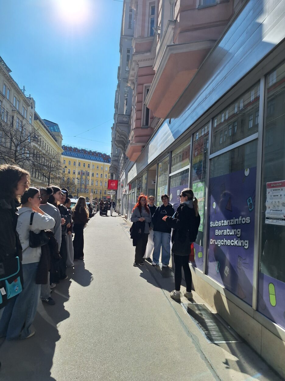 Am 14. März 2026 standen nämlich eine Themenführung im Weltmuseum in Wien sowie eine Shades Tour auf dem Programm. Der Besuch im Weltmuseum stand im Zeichen globaler Lebenswelten, die Schüler:innen machten sich dabei mit „Menschen und Objekten auf Wanderschaft“ vertraut. Neben der aktuellen Sonderausstellung „Kolonialismus am Fensterbrett“ konnten sich die Schüler:innen im Rahmen des Workshops mit verschiedensten Ausstellungsstücken aus der Sammlung des Weltmuseums vertraut machen. Der schwierige Umgang mit Exponaten, die als Teil von z.B. Habsburger-Sammlungen in den Besitz der Republik Österreich übergingen, wurde dabei stets mitbedacht. Die anschließende Shades Tour zum Thema „Sucht und Drogen“ ermöglichte den Schüler:innen einen spannenden sozial-politischen Einblick in eine andere Lebenswelt, nämlich in die suchtkranker Menschen in Österreich.