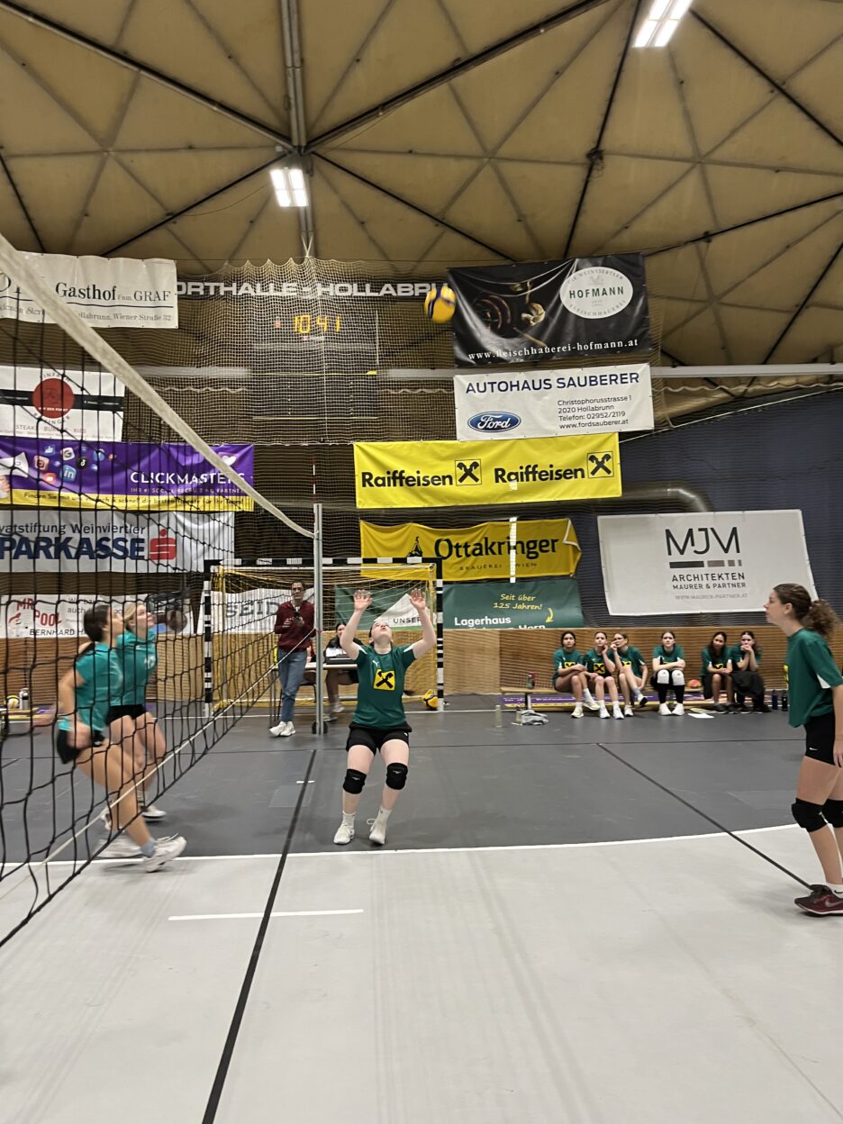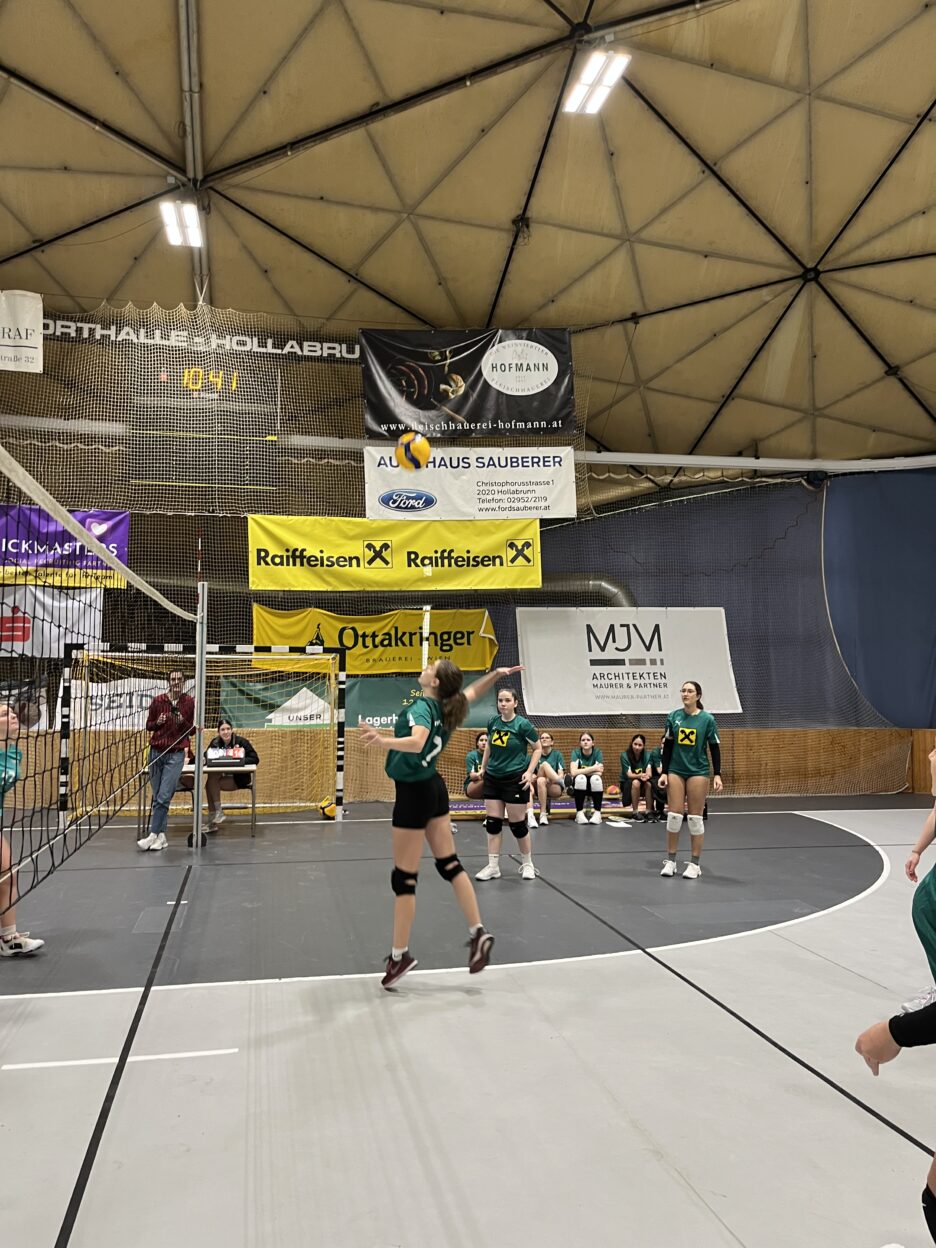 Das wohl beste Spiel des Tages lieferten wir dann gegen die Mädels aus Deutsch Wagram. Nachdem wir leider gleich zu Beginn in Rückstand gerieten, fighteten Emma Margetich & Co. Aufopferungsvoll zurück und verlangten den späteren Siegerinnen des heutigen Tages alles ab, konnten aber nicht mehr ausgleichen. Anders entwickelte sich Durchgang zwei, wo wir auch dank zweier Monster-Blocks von Marlene Lisy einen 5-Punkte Vorsprung herausspielen konnten. Anstelle von zunehmendem Selbstvertrauen schlich sich aber leider ein wenig Nervosität ob der Führung ein und wir mussten dank einer kurzen Schwächephase kurze Zeit später den Ausgleich hinnehmen. Anschießend entwickelte sich ein packender Kampf, wo schließlich einige knappe Bälle nicht zu unseren Gunsten landeten und wir trotz einer Top-Leistung keinen Satzgewinn schafften.
