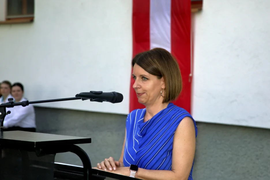Weiters gratulierten die Vorsitzende der Abschlussprüfungen, Frau FV Katharina Eckl, die Bildungsstadträtin der Stadtgemeinde Hollabrunn, Frau Elisabeth Schüttengruber-Holly, und die Elternvertreterin, Frau Andrea Gräf.