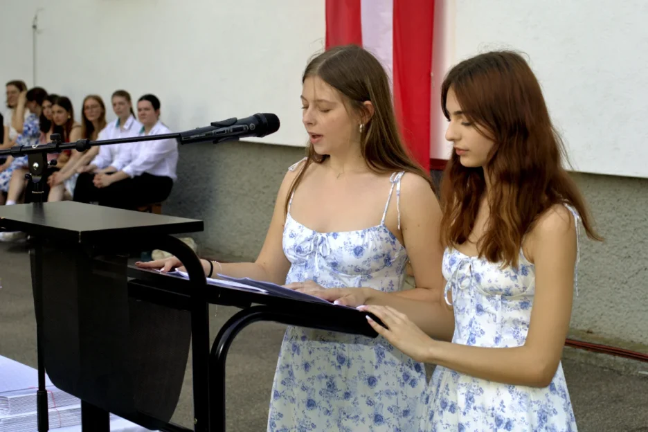Die Klassenvorständinnen, Frau Mag. Doris Kurzbauer (3AFW), und Frau Mag. Anna Zimmerl (3BFW) hielten auf launige Weise Rückblick auf die vergangenen drei Jahre. Anschließend wurden die Abschlusszeugnisse überreicht.