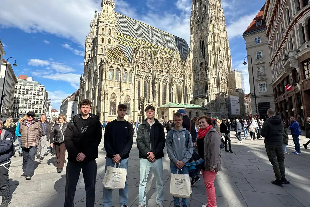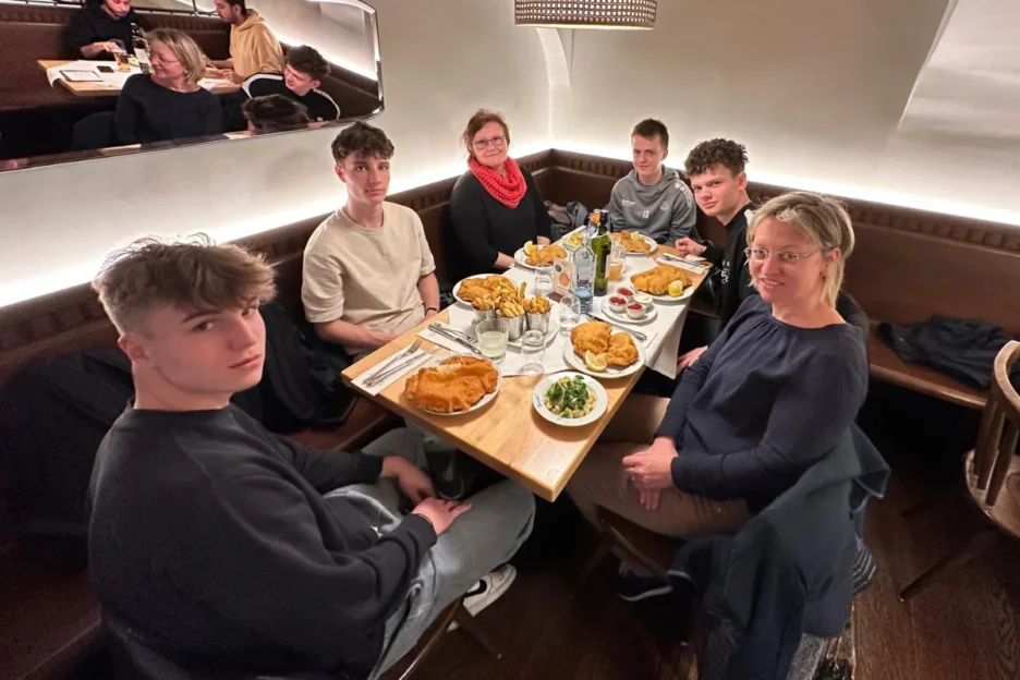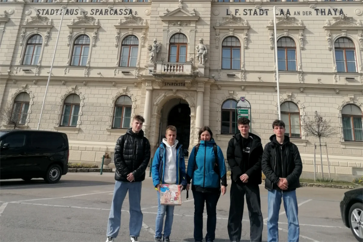Auch das außerschulische Programm ist sehr reich, sie turnen im Gym des Stadthotels, wo sie untergebracht sind, gehen joggen, spielen Tischtennis, haben eine Wanderung zur Koliskowarte unternommen, haben viel Spaß im Motorikpark gehabt, haben die Bildungsmesse besucht, sind mit einigen unseren Schüler:innen an einem schönen Freitagnachmittag den Kellerkatzenweg gegangen, haben einen Ausflug nach Laa an der Thaya und in die Therme gemacht, in Wien haben sie Schnitzel gegessen – ein Essen, dass die Österreicher und Tschechen verbindet – haben den Stephansdom aber auch den Prater besucht.